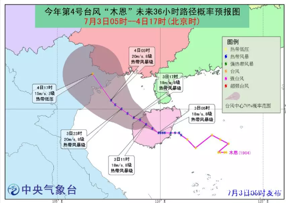 中央气象台7月3日06时继续发布台风蓝色预警。